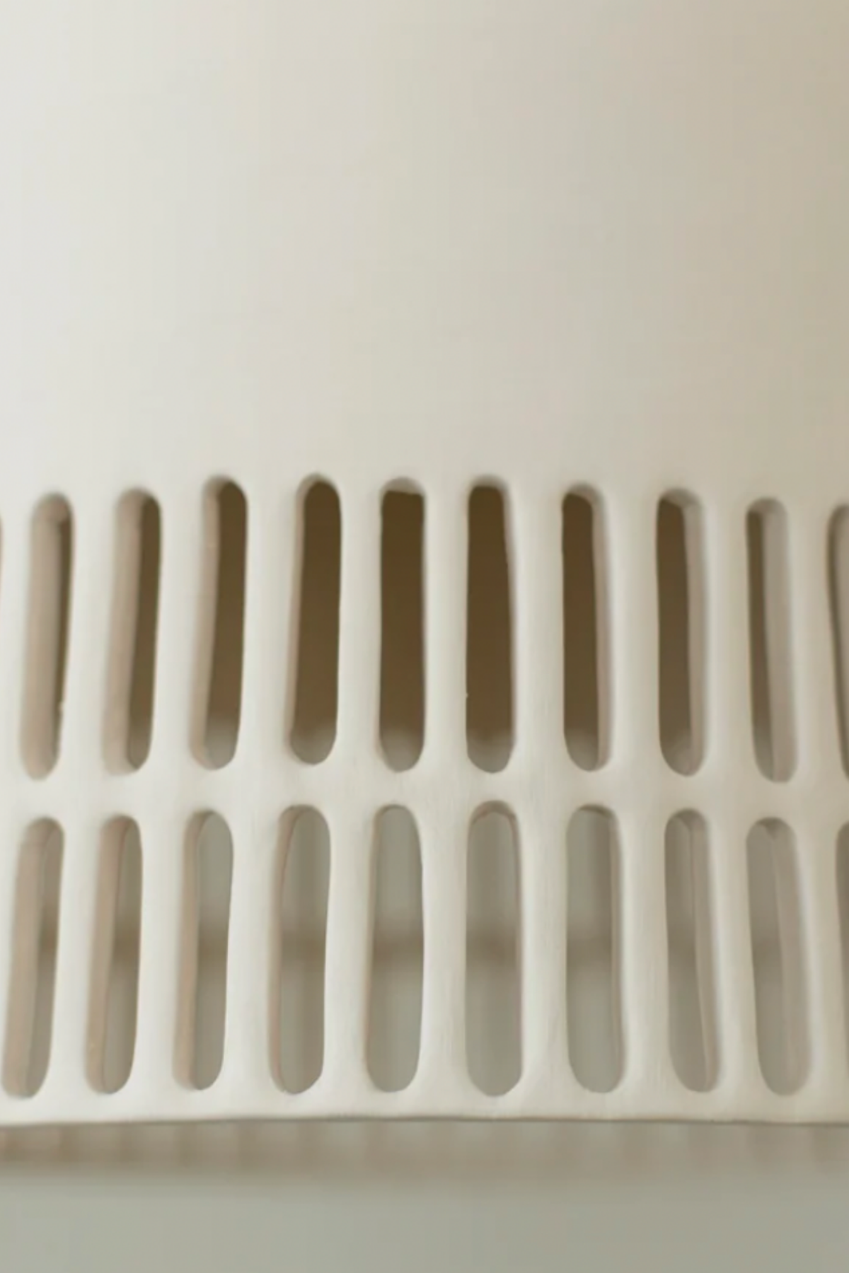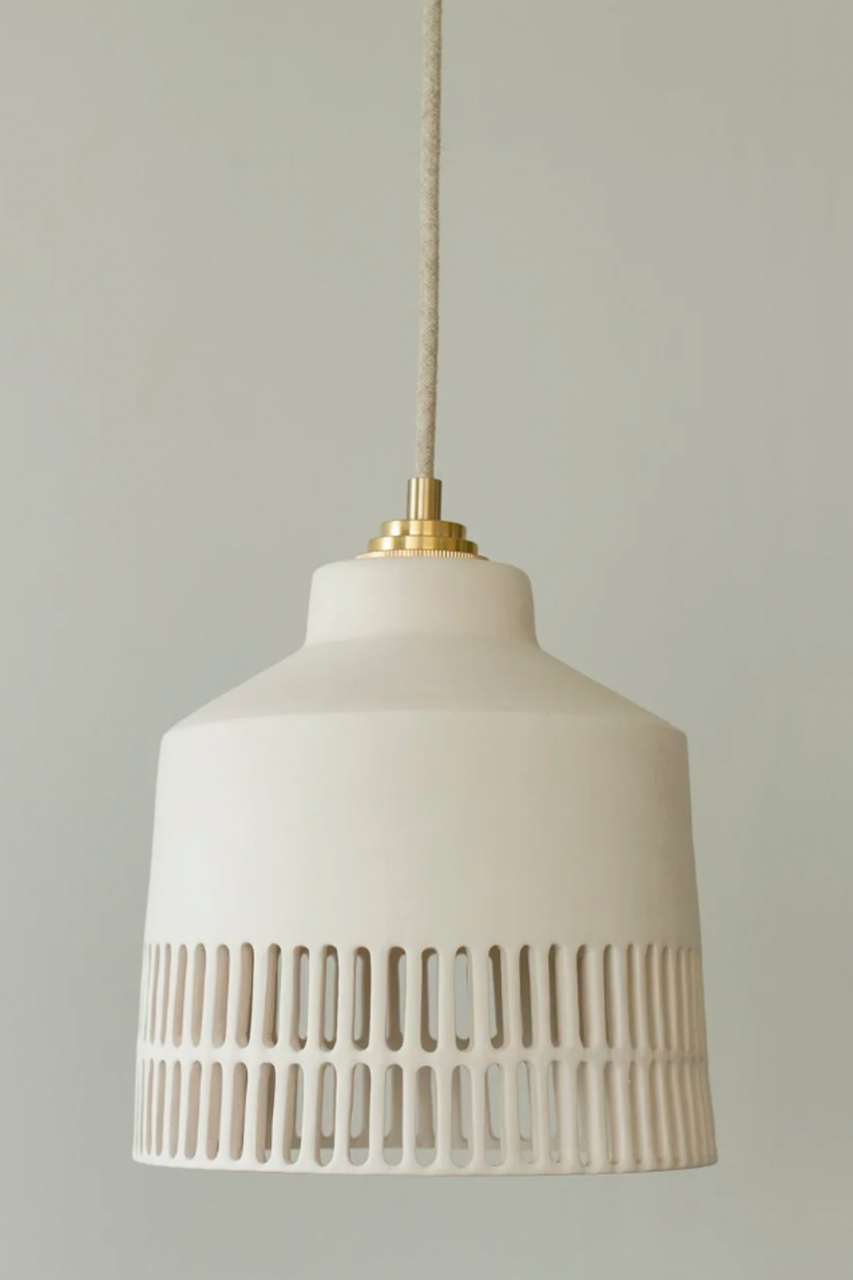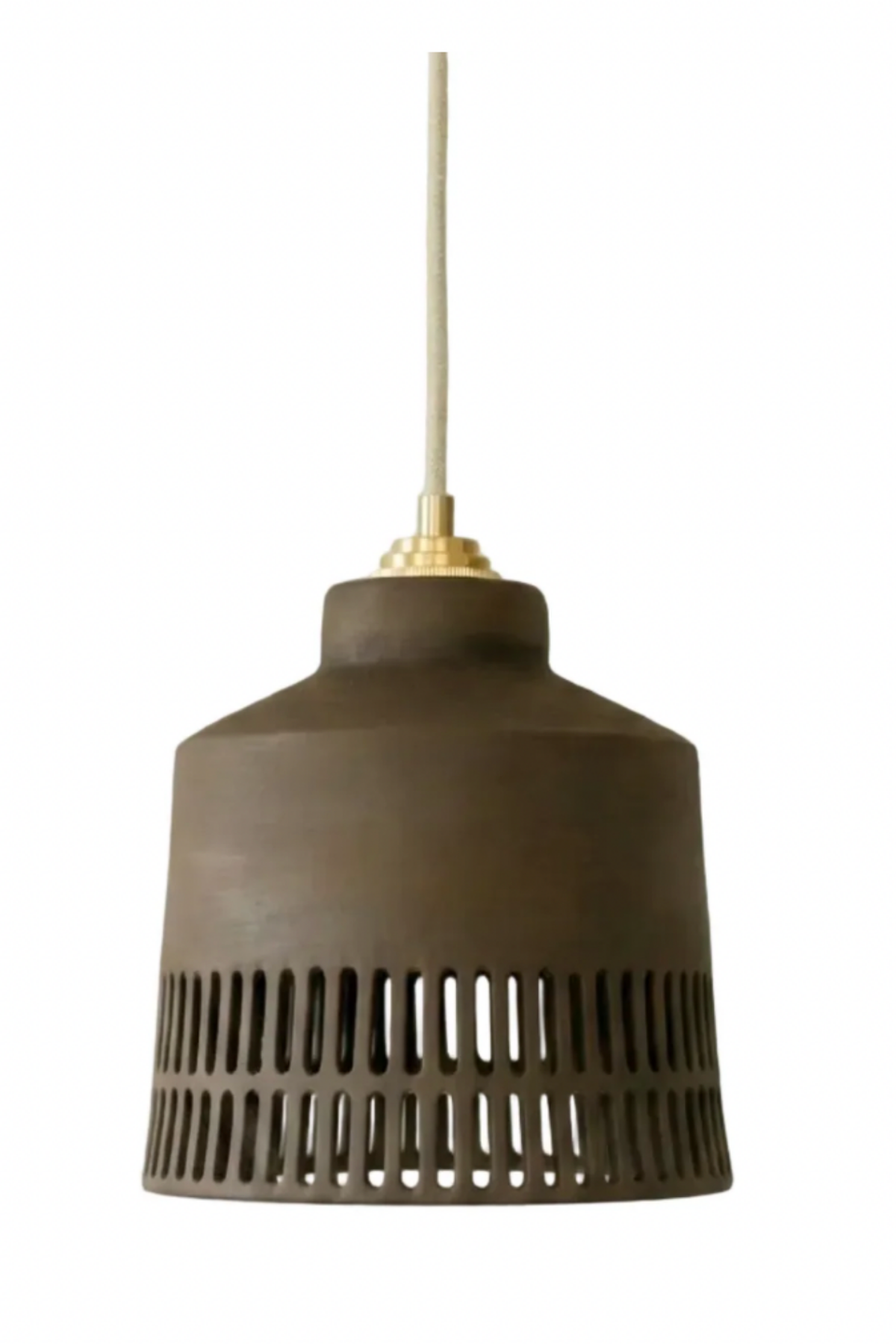 A sophisticated blend of raw texture and refined geometry, the Magnolia Pendant Light is handmade in Spain from natural, unglazed clay and finished with polished brass hardware. Its signature hand-cut openwork detail casts a soft, patterned glow, while the earthy clay body celebrates organic imperfections and graceful ageing. Individually crafted, each piece carries its own unique texture and character—bringing warmth, artistry and quiet statement to any interior.