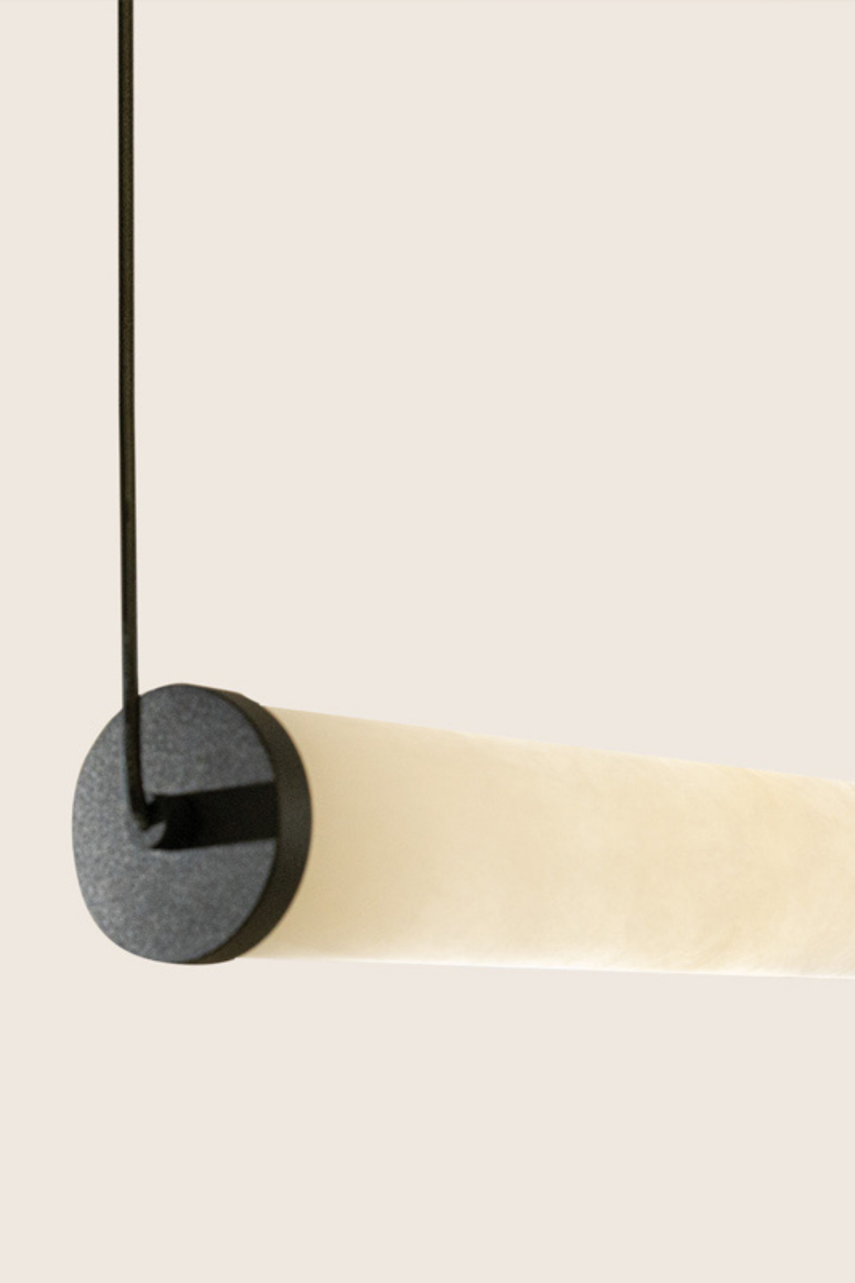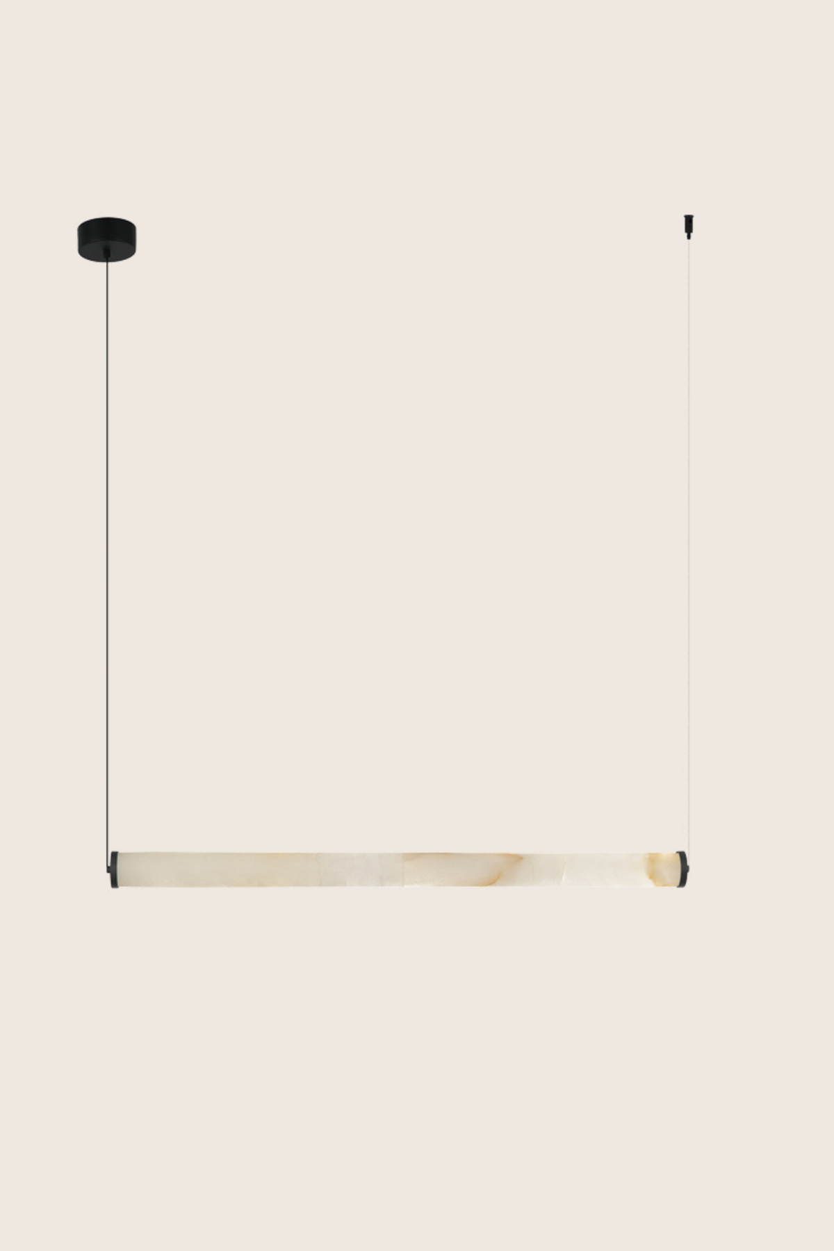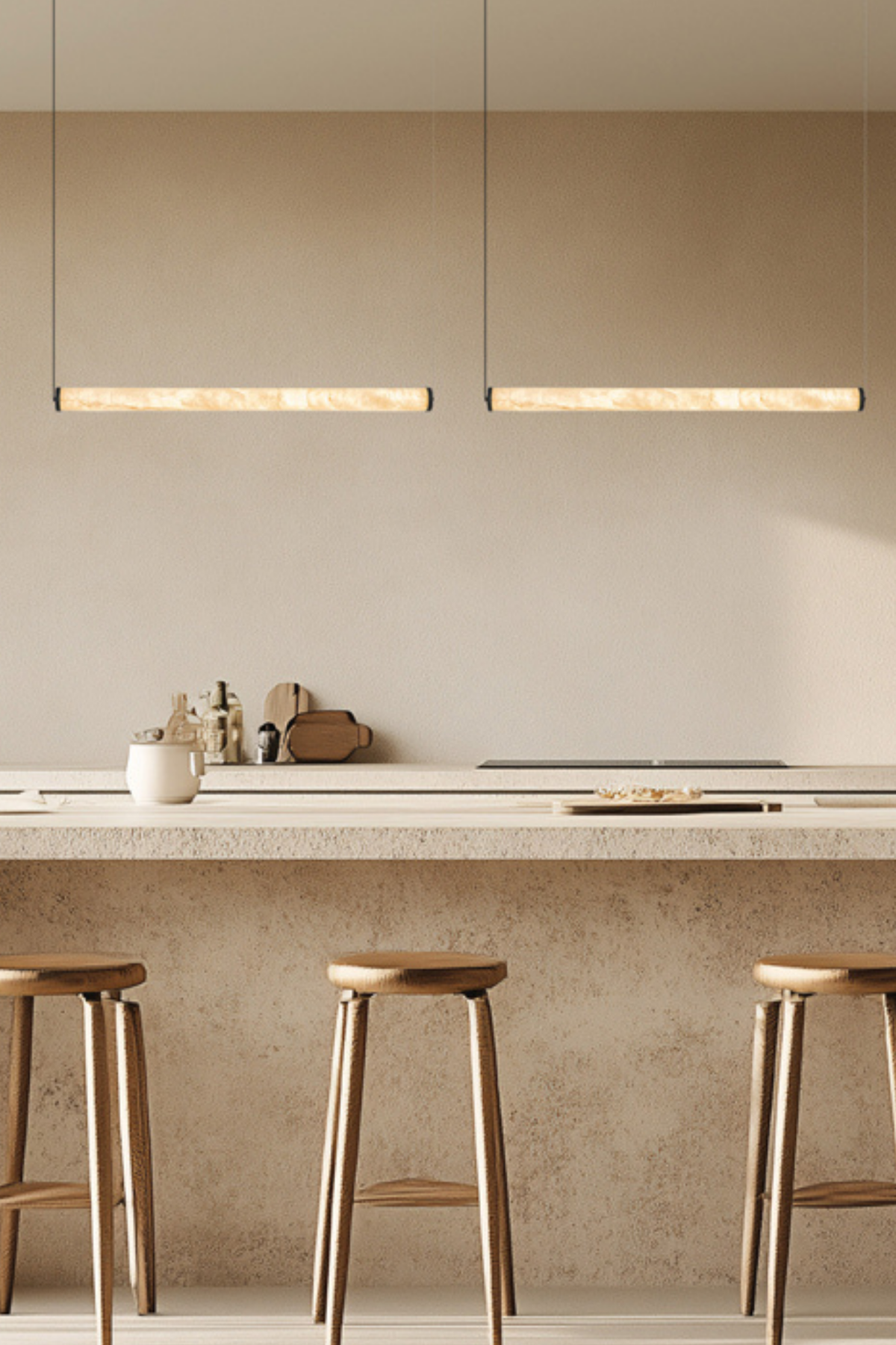 The Zeus Axis Pendant features a slim linear profile, offering a contemporary statement ideal for kitchen islands, dining spaces and minimalist interiors.