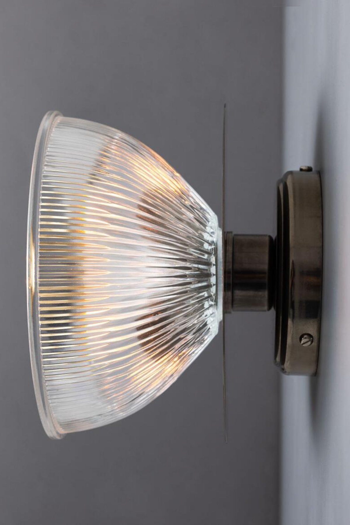 The Eclipse wall light showcases a striking design that brings warmth and character to any space. Featuring a brass disc paired with a Holophane glass shade, it casts a distinctive glow that beautifully echoes the visual drama of a solar eclipse. The result is a unique interplay of light and shadow that adds depth and atmosphere to interiors.