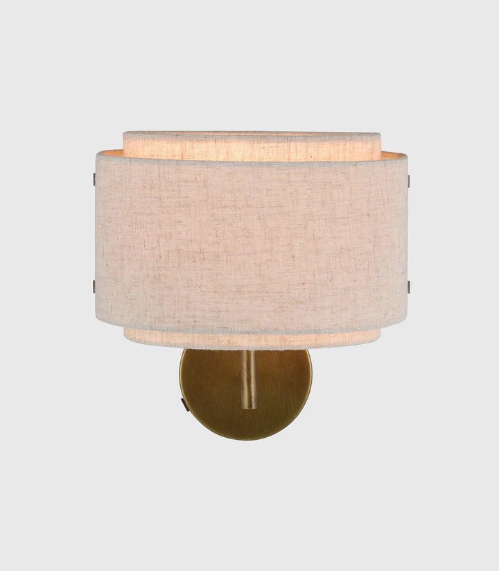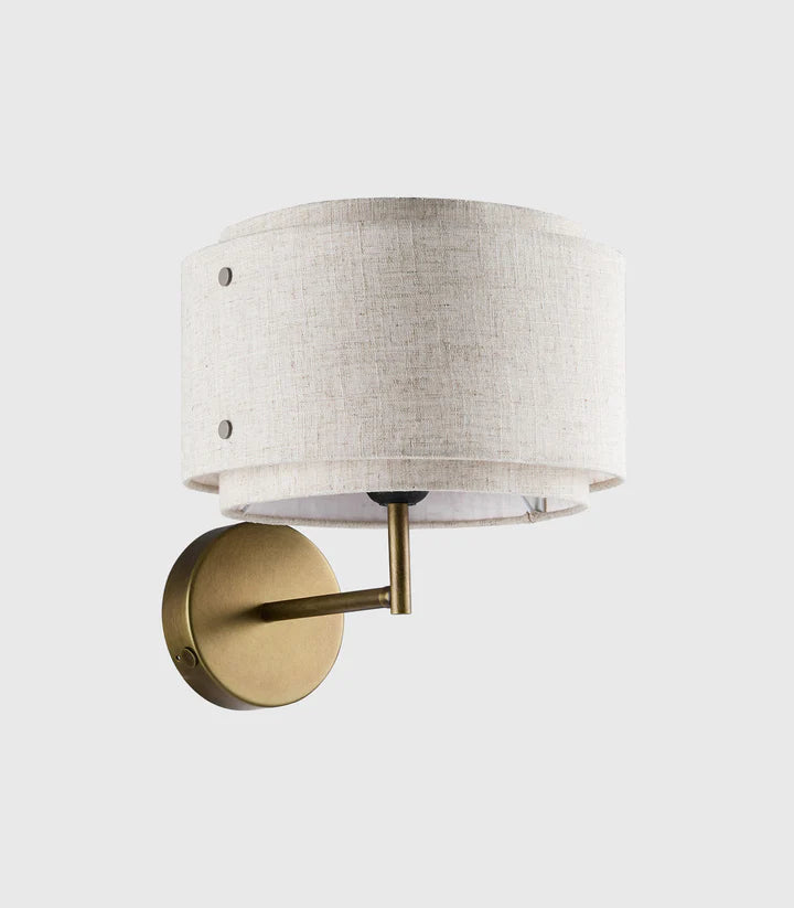 The pairing of a soft flax linen shade with a burnished brass base creates a warm, inviting aesthetic. This harmonious blend of materials brings a sense of understated elegance and tactile richness to any space.